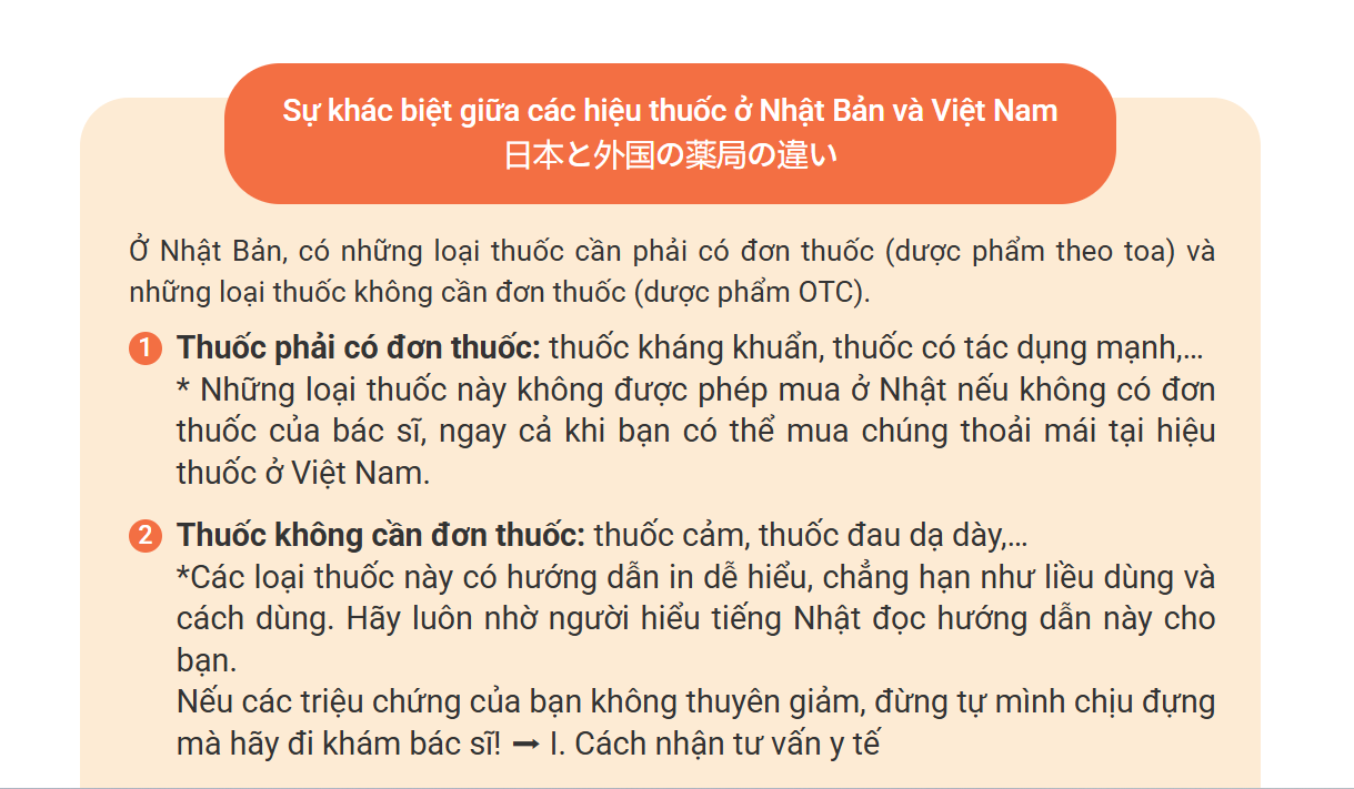 Để mang lượng thuốc đủ dùng trong hơn một tháng vào Nhật Bản hoặc yêu cầu gửi thuốc từ Việt Nam, bạn sẽ cần phải thực hiện một số thủ tục nhất định (Giấy chứng nhận xác nhận nhập khẩu). Ngoài ra, luật pháp Nhật Bản không cho phép bạn bán hoặc tặng, mua hoặc nhận thuốc tự mình mang vào Nhật Bản cho bạn bè, người quen. Tuyệt đối không được thực hiện hành vi này.