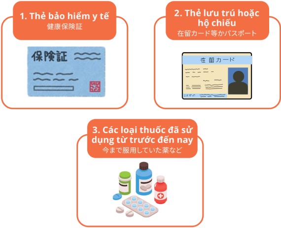 Bắt buộc phải mang theo: Thẻ bảo hiểm y tế, tiền (tiền mặt)