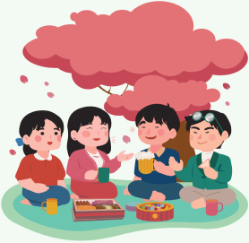 Mùa xuân ở Nhật Bản là mùa ấm áp và thoải mái. Là mùa nhập học, bắt đầu cuộc sống mới, nên mọi người thường nói “Mùa xuân là mùa của gặp gỡ”. Mùa này có hoạt động “Hanami”, tại đây mọi người vừa ngắm hoa anh đào vừa ăn và thưởng thức rượu.